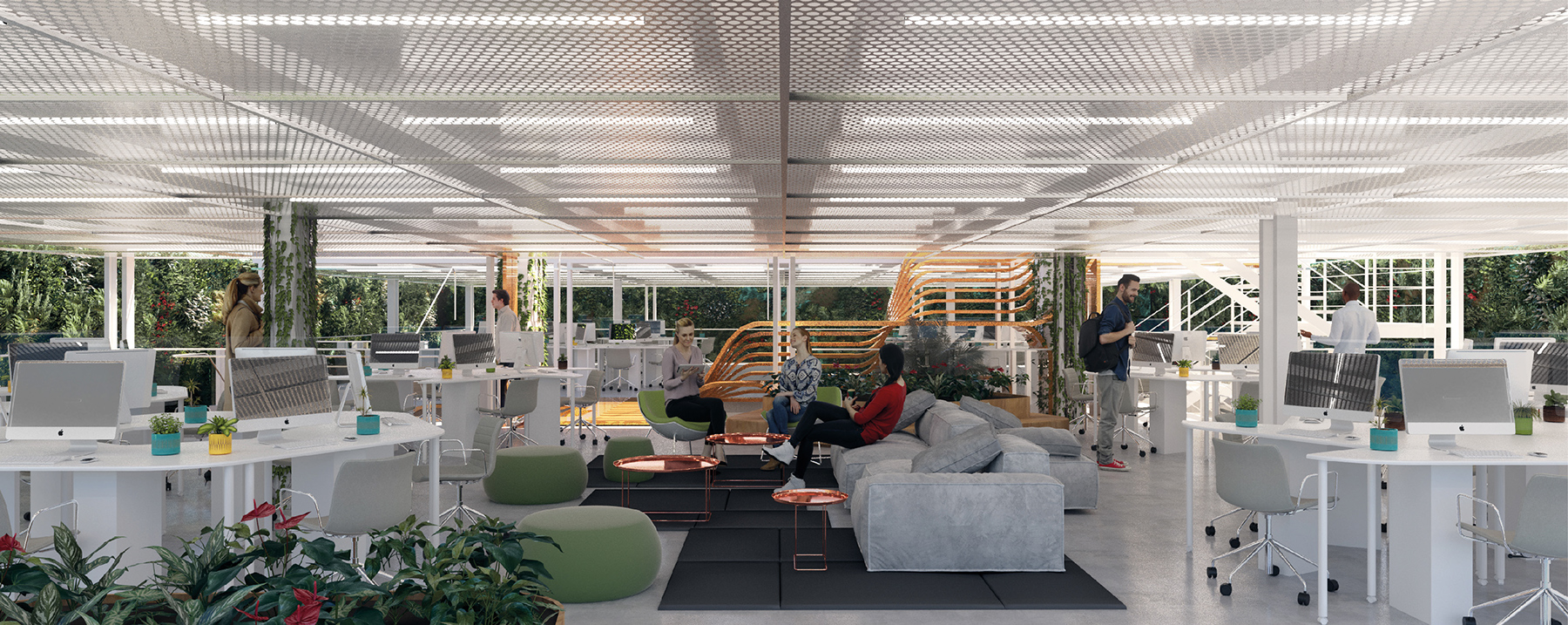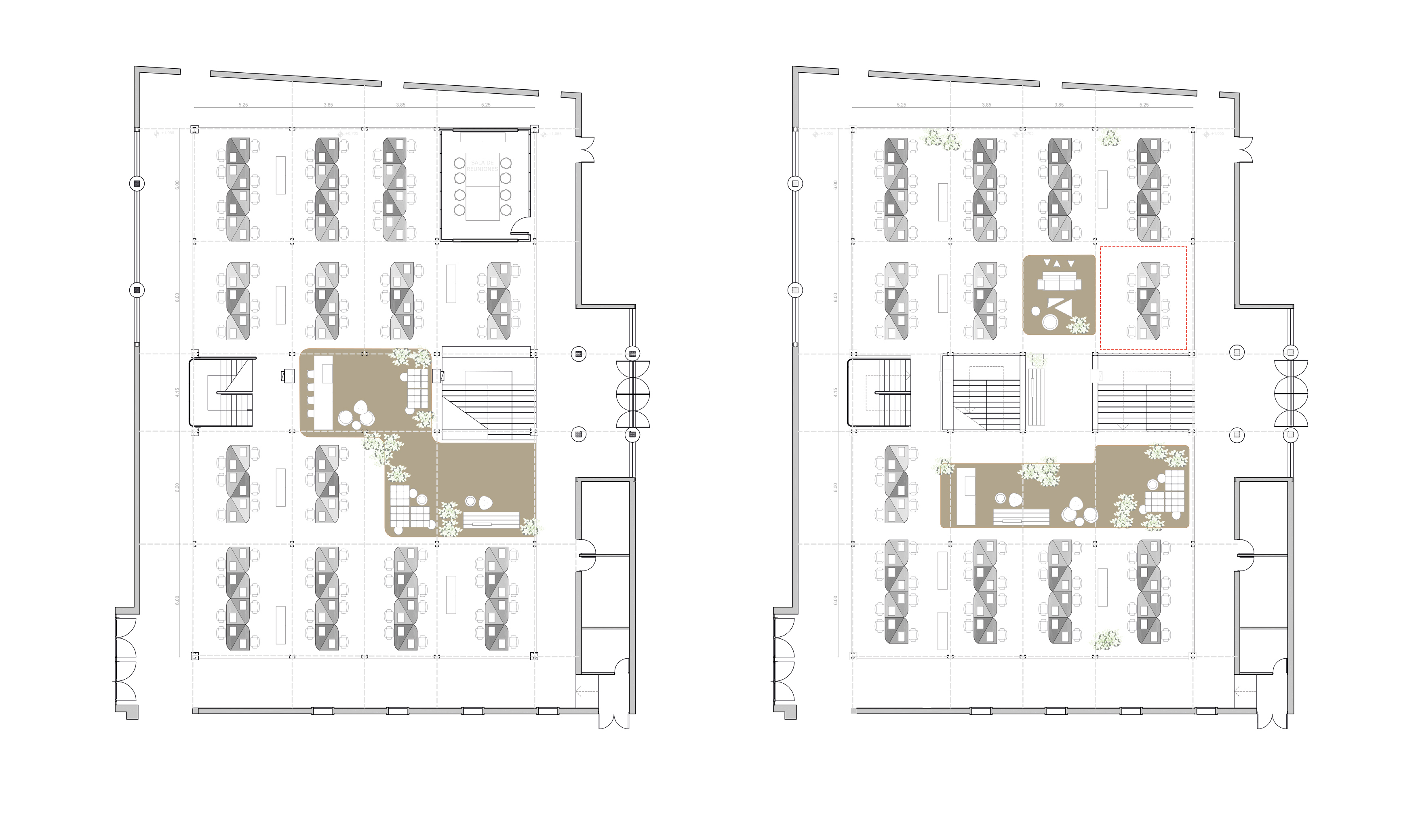 The space proposes a progressive democratisation of work: as levels connect, dialogue between teams becomes structural. Those who inhabit these offices find an environment that responds equally to focused individual work and spontaneous collaboration.